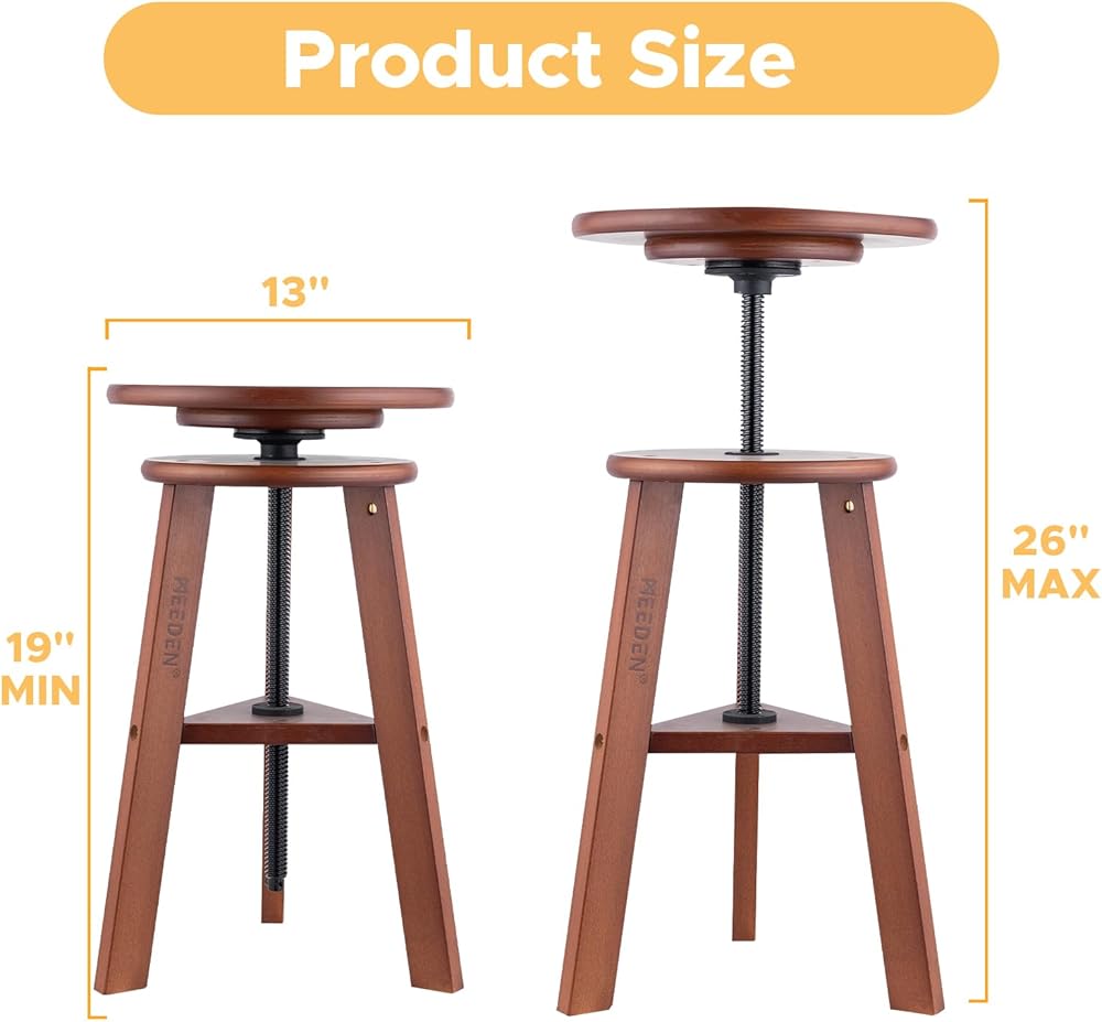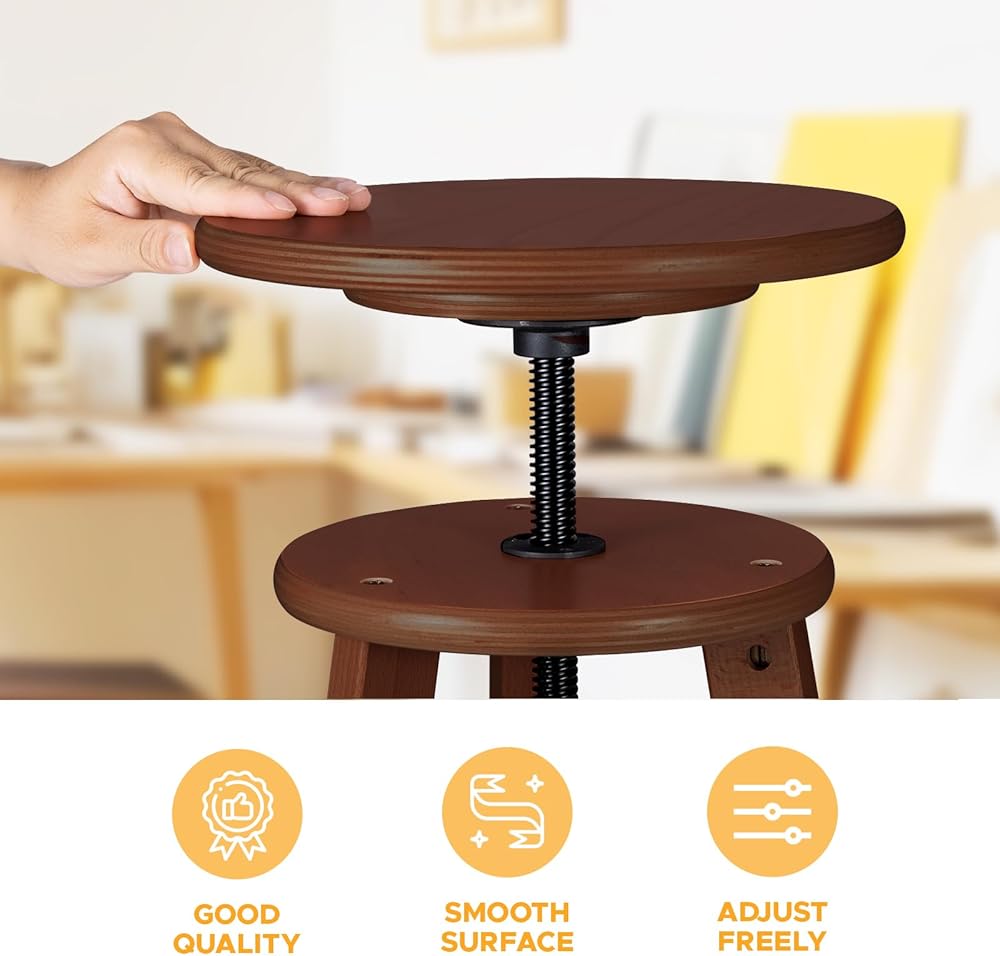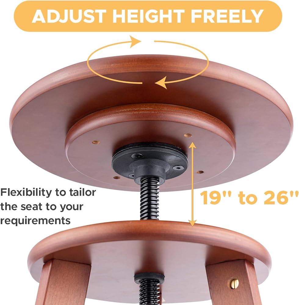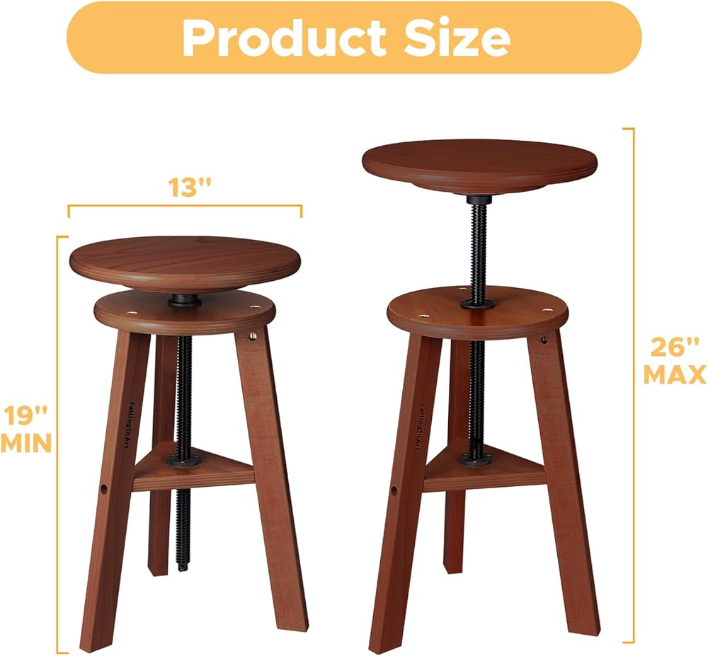 [Customizable Height] Falling in Art wooden stool offers a swiveling seat that ranges from 19" to 26" in height. So you will have the flexibility to tailor the seat to your requirements and workspace, ensuring optimal ergonomic support for long hours of work.