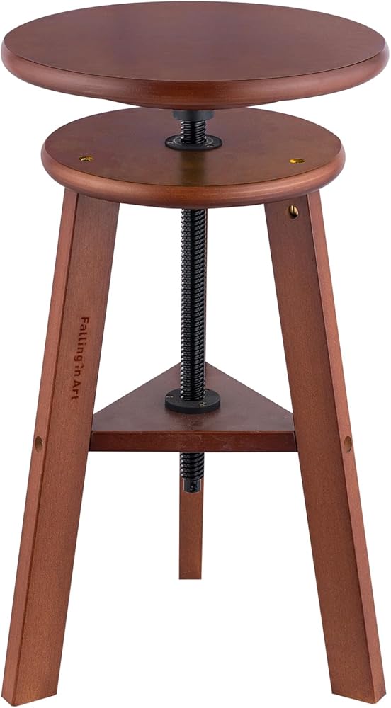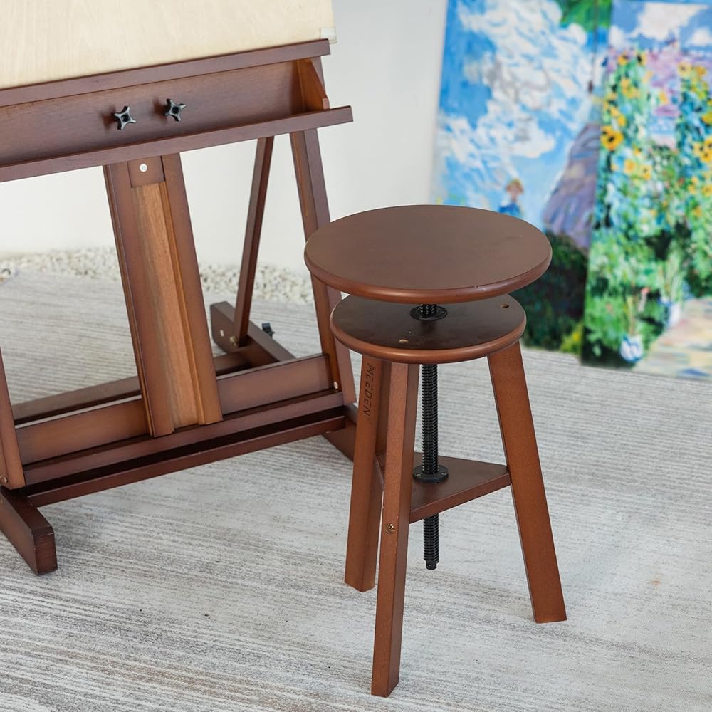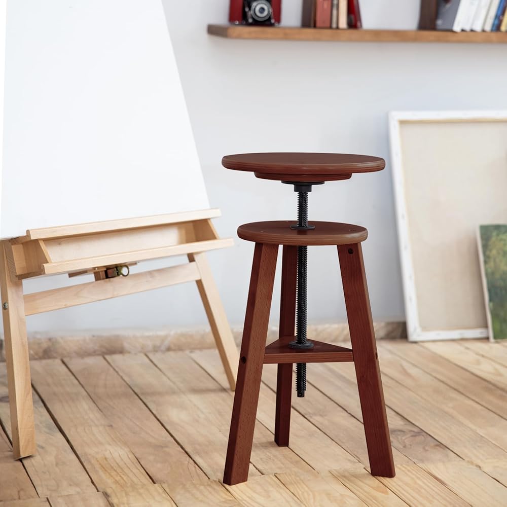 Falling in Art 19" to 26" High Wooden Drafting Stool, Beechwood Artist Stool with Adjustable Height, Wood Stool Chair for Painting, Perfect for Artist Studio, Office and Home Use, Deep Walnut