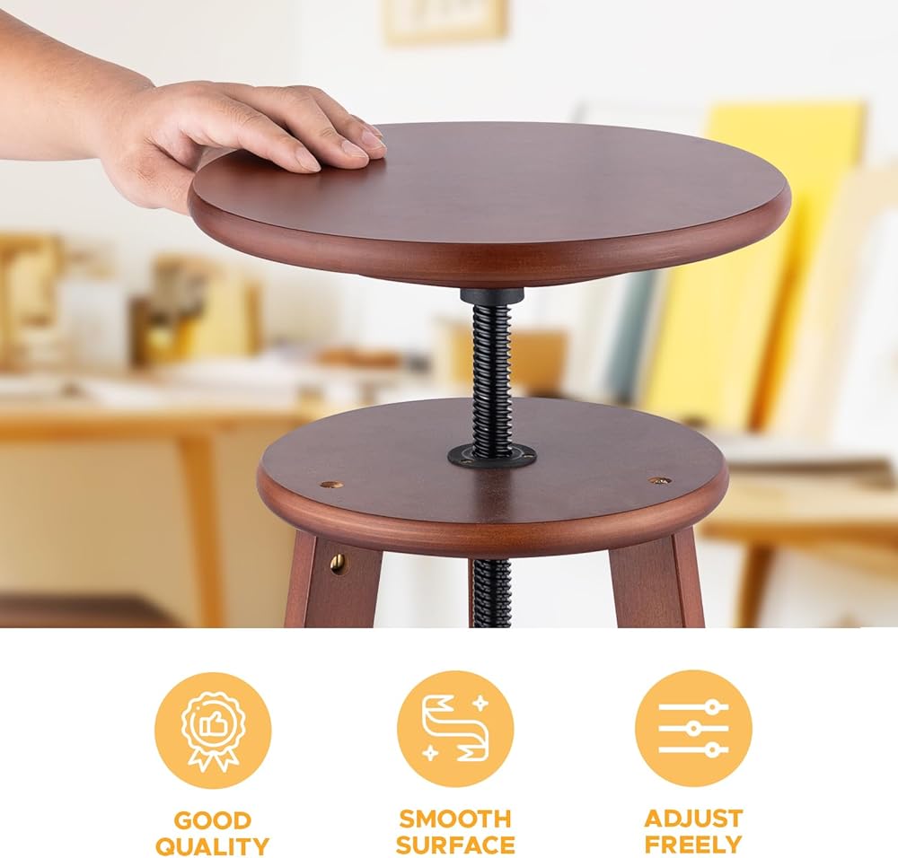 [Simple Assembly] Setting up the artist stool is a breeze and doesn't demand the expertise of a professional installer. Comprehensive installation instructions are provided for your convenience. Secure the screw rod and round wooden board with tools to ensure a tight fit.