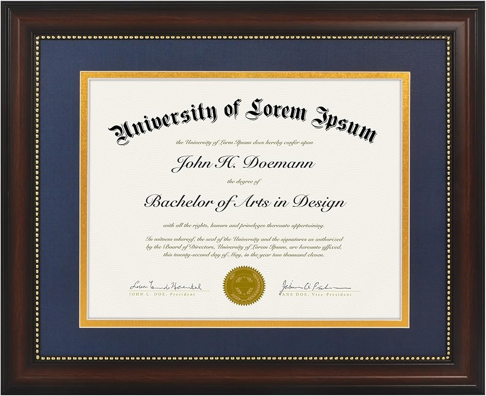 Traditional Style Frame: These 11x14 frames are a great way to frame certificates and documents either for full size 11x14 documents, or smaller 8.5x11 certificates when used with the mat included. Actual mat display area is 8x10.5 inches.