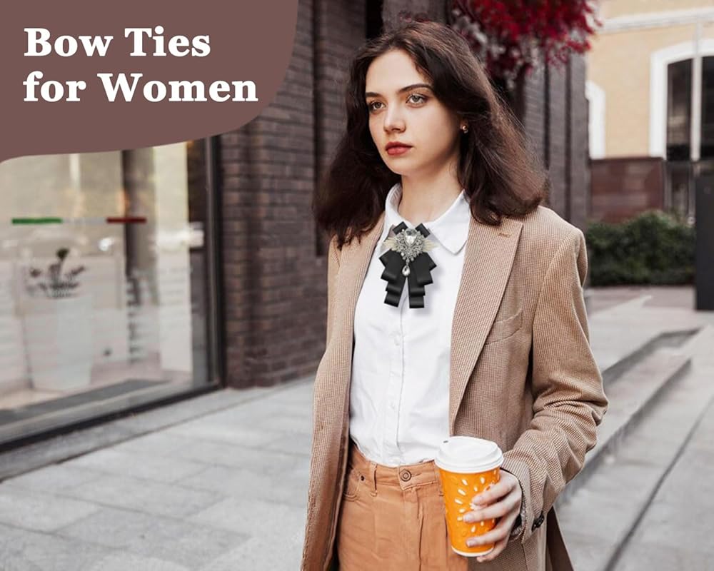 3 Styles of Womens Bow Tie: This bowtie is available in 3 styles: brooch(black/blue), adjustable strap(black/blue), brooch and strap all (red/burgundy); The bow ties for women can meet all your wearing needs, easily match your suit, shirt, dress perfectly