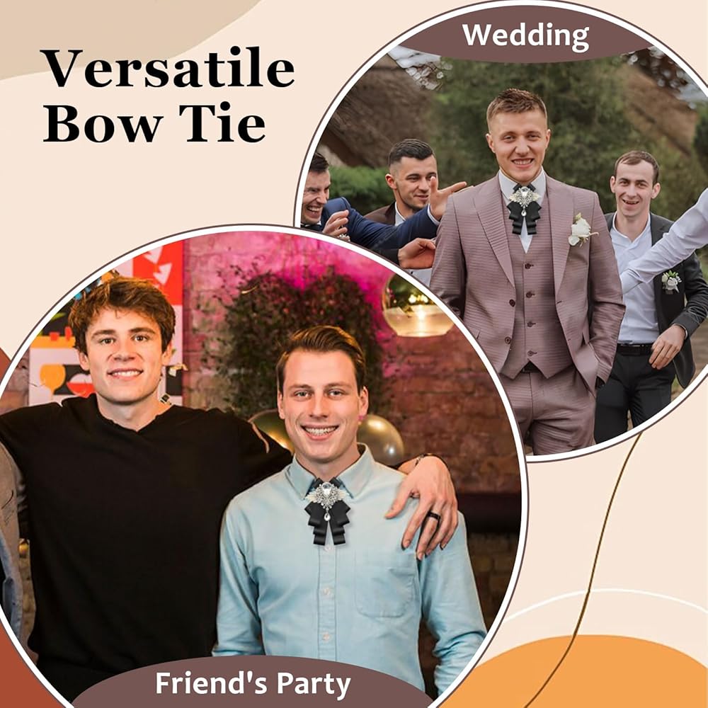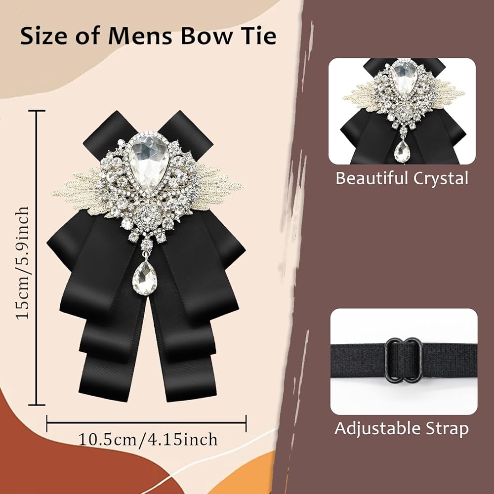 Rhinestone Bow Ties for Women: These exquisite women's bow ties are made of silky soft ribbon and sparkling crystals; The unique design of this clip on bow ties makes you the most shining gentleman in the crowd