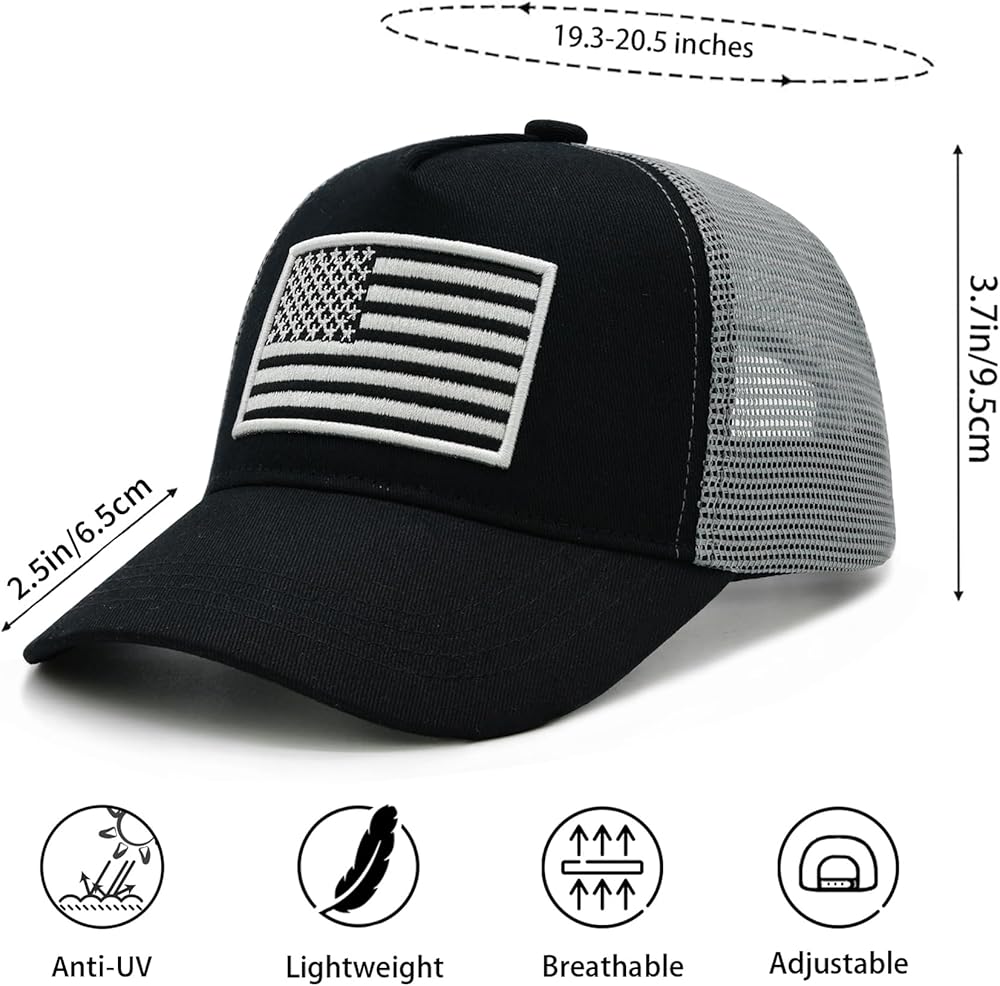 Applicable Occasions: Whether your little one loves play outdoor activities, fishing and other sports, these US flag trucker hats provide excellent protection from the harsh rays. Four mesh mid and rear panels, keep your child cool and protected all day long!