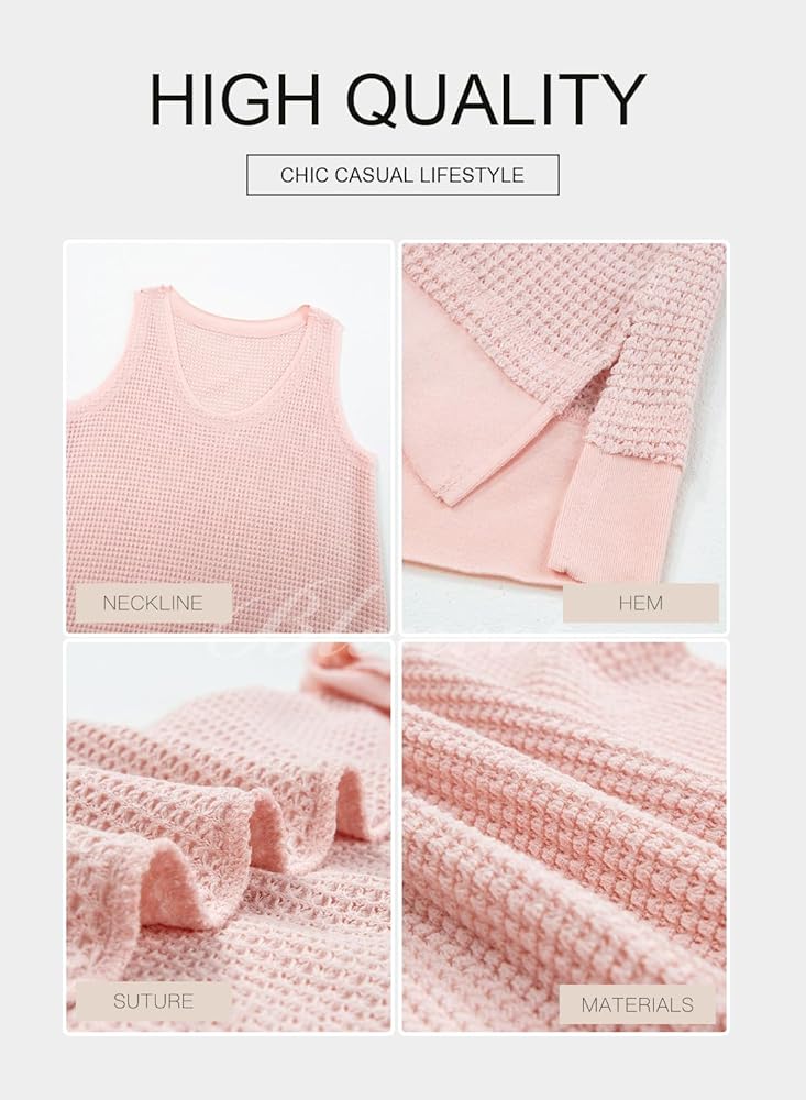Material: 65%Polyester+30%Viscose+5%Elastane.Women's tank tops made of waffle knit, soft, breathable and skin-friendly, comfy to wear in spring, summer