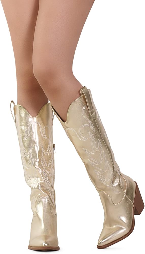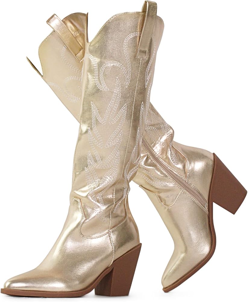 - Features: traditional western look with easy to walk low heel, pointed toe, easy pull on wear, chunky stacked heel, cushioned insole.