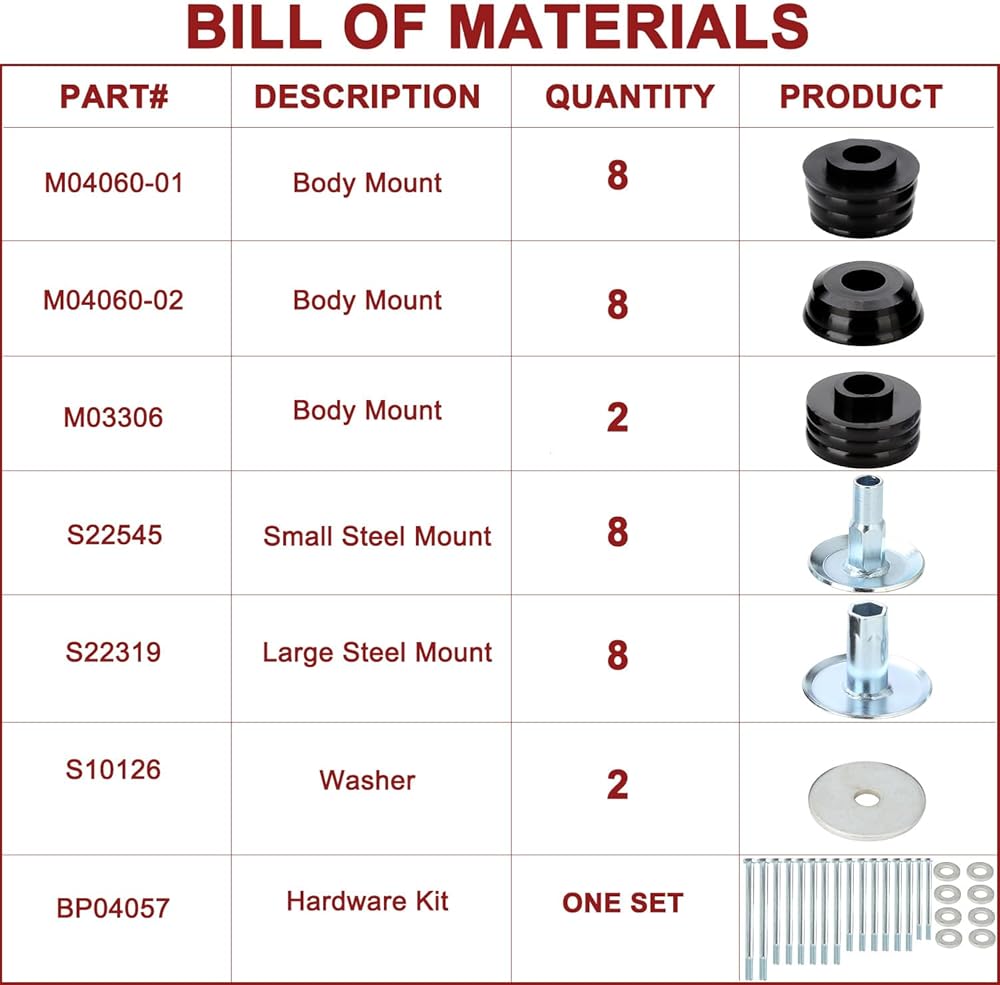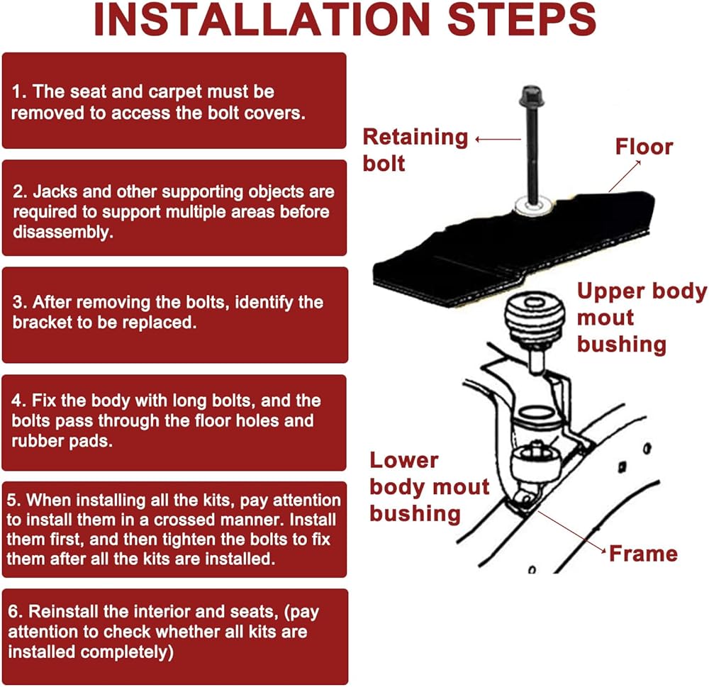 Excellent Performance: The body cab bushing kit can resist road dirt and car liquids, effectively minimizes vibrations, noise, and movement within the cab, Providing a smoother and more comfortable ride