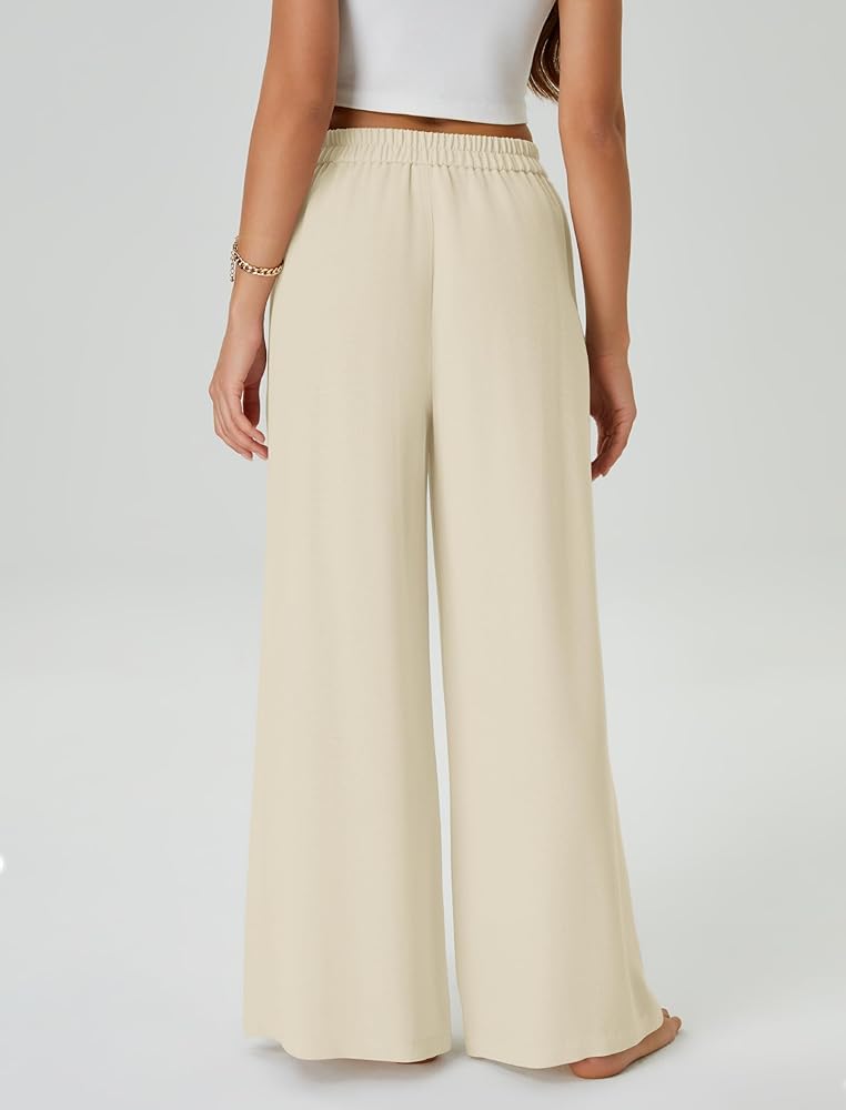 Flowy&Boho: JEKAOYI Women's Casual Palazzo Pants featuring a elastic high waist and wide lesgs for a flowy and boho-chic look perfect for beach days and vacations.The two side pockets add functionality without compromising style.