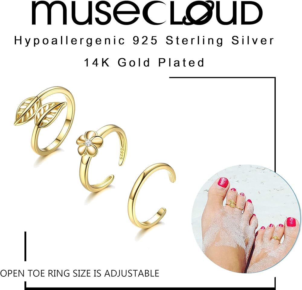 💝MATERIAL💝The toe rings are made of 14k-gold-plated 925 sterling silver. Nickel-free, lead-free, cadmium-free, hypoallergenic for women.