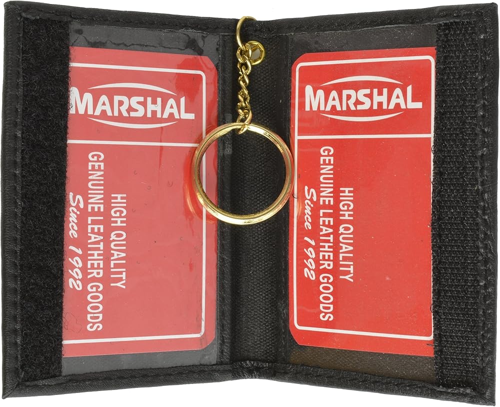 MARSHAL Genuine Lambskin Soft Leather Credit card Id Card Holder with Key Chain