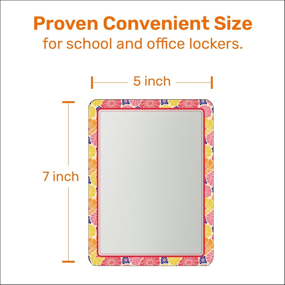 • PROVEN CONVENIENT SIZE FOR MOST SCHOOL AND OFFICE LOCKERS. 5 inch x 7 inch. Suitable size for lockers, refrigerators and small spaces. Functional for quick checks and touch-ups.