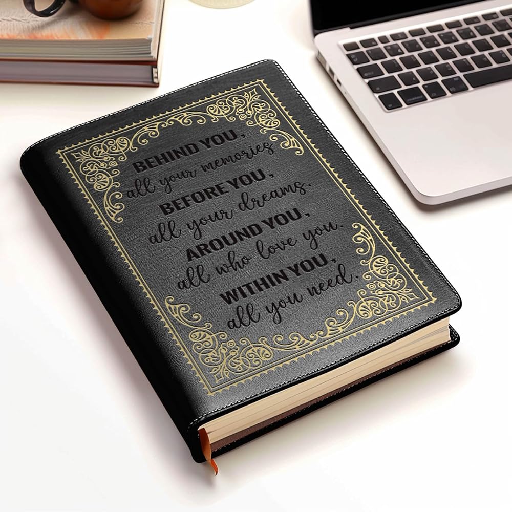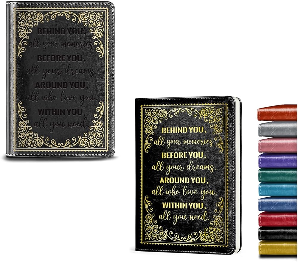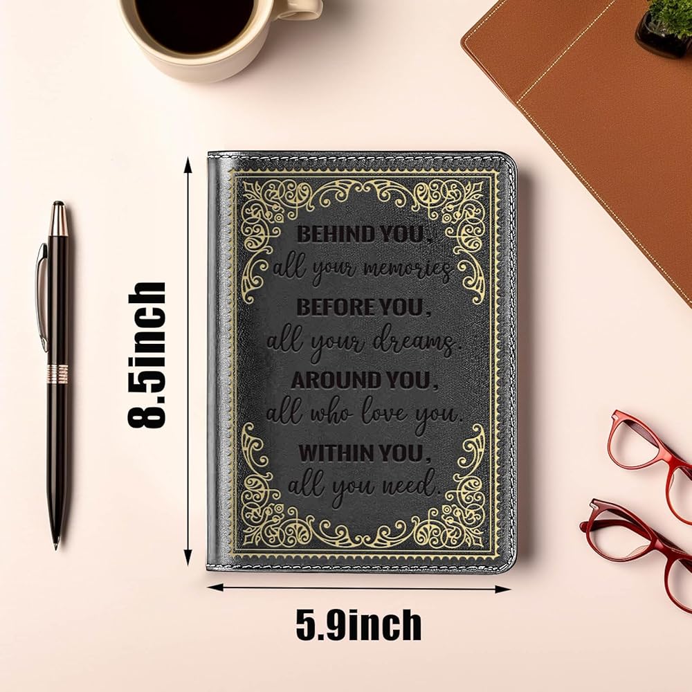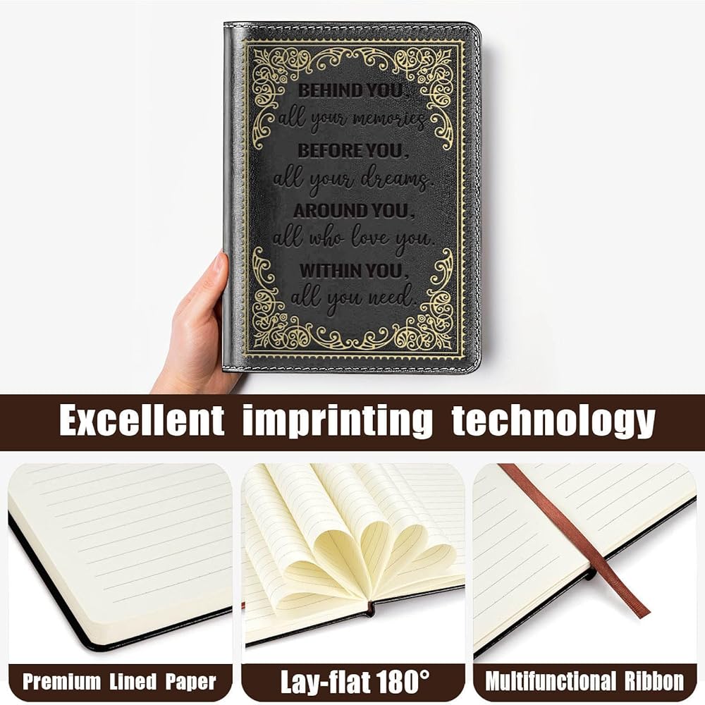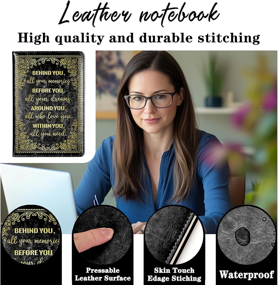 Encouragement Gift Inspirational Leather Journal Appreciate Gift Graduation Lined Journal Notebook Behind You, All Your Memories Notebook ,Random one(Black)(Behind you-Black)