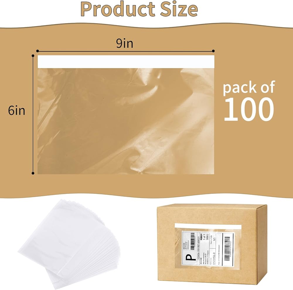 CLASSY Premium Clear 6'' x 9'' Packing List Envelopes, Self-Adhesive Shipping Label Sleeves,100Pack
