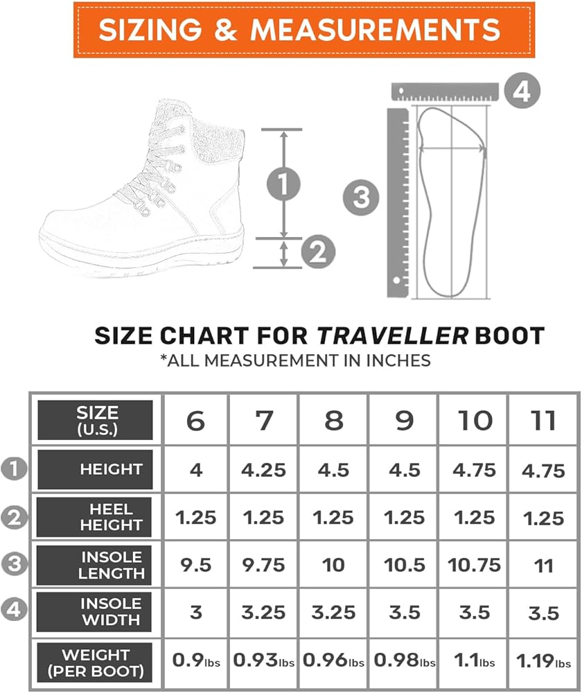 Warm Lining: Stay cozy and dry with our Traveller warm lined boots! The full wool lining keeps feet incredibly warm and comfortable, while the moisture-wicking design ensures dryness. With insulation down to -25°C / -13°F, your feet will stay snug in cold temperatures.