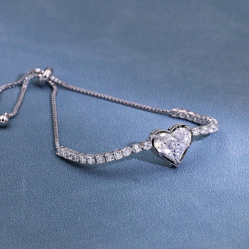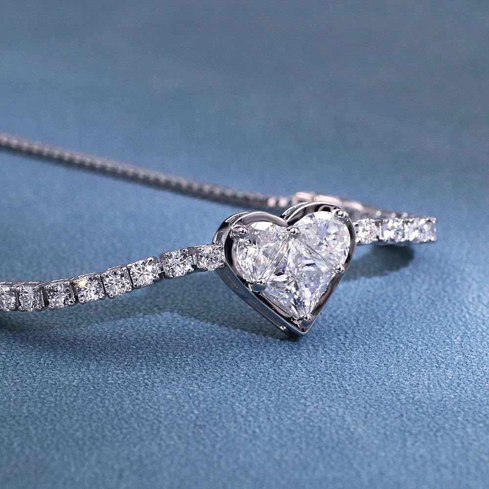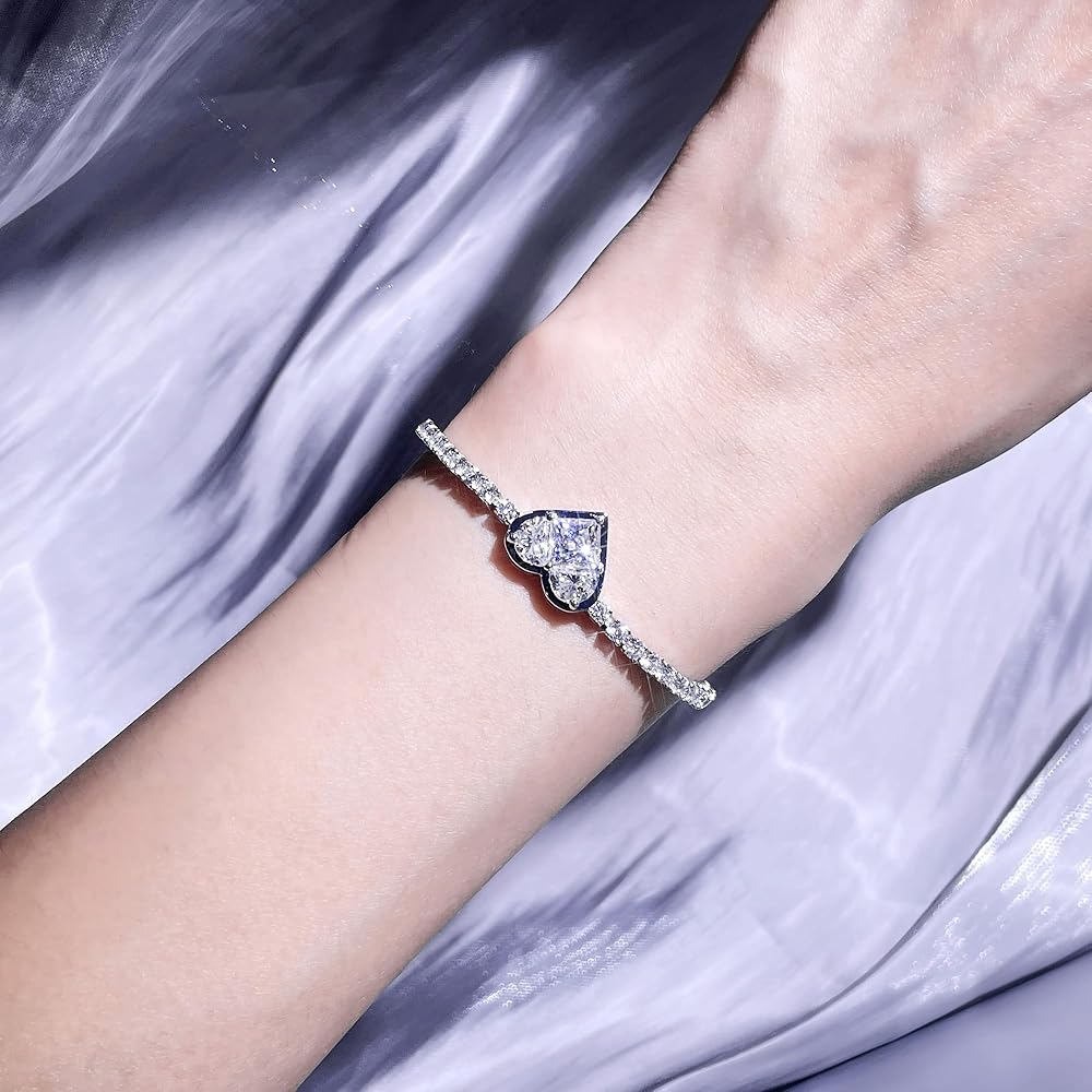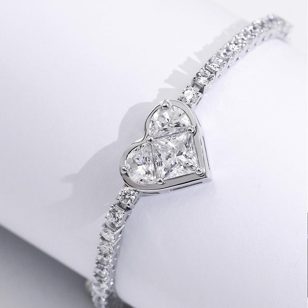 Silver bracelets for women are set with 1pcs*6.5mm + 32pcs*3mm + 16pcs*1.2mm D color VVS clarity moissanite diamonds,total 4.35 carat,very sparkle and can attract the attention in the crowds.