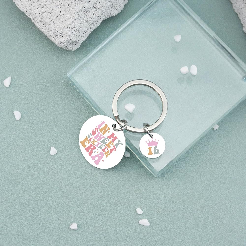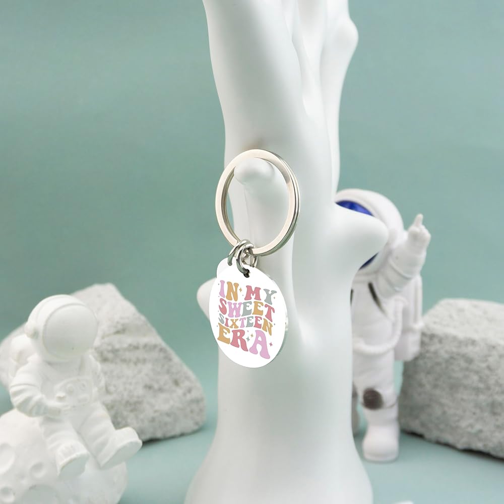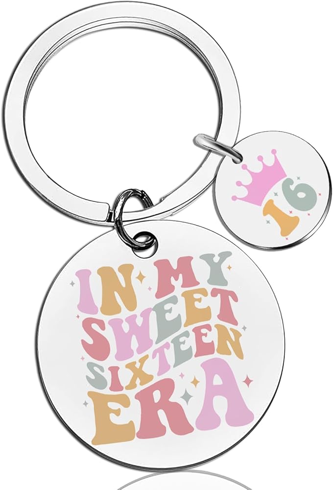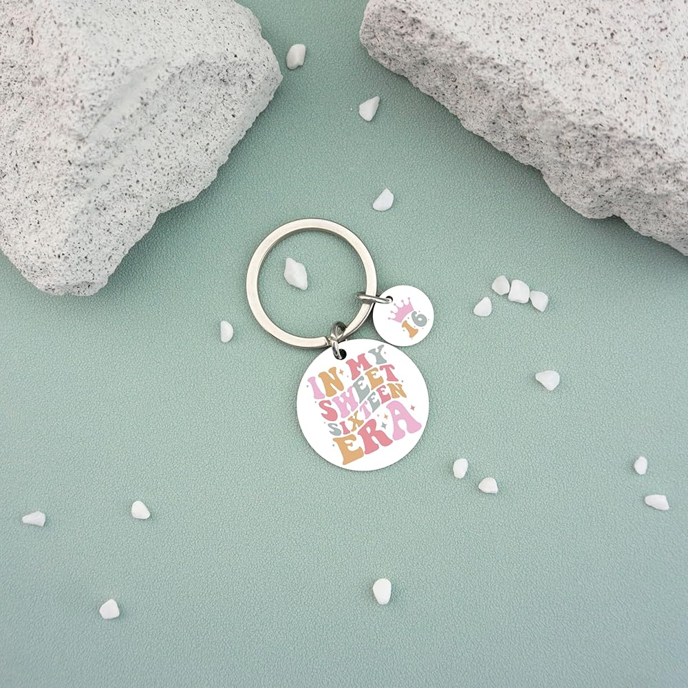 16th Birthday Gifts For Girls-Sweet birthday keychain for someone who was just turning sixteen, cute and meaningful.The keychain is engraved with “IN MY SWEET SIXTEEN ERA”,expressing your care and love for kids daughter sister bestie friend granddaughter and stepdaughter.Every girl will feel surprised and love it.16 years old is a new stage in life. This keychain can convey your love to her and accompany and encourage her.