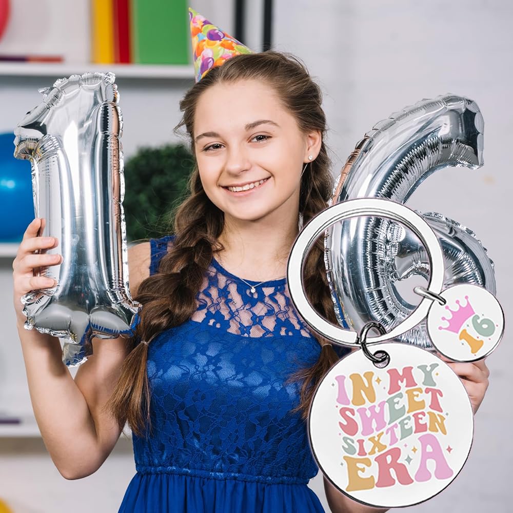 Sweet 16 Birthday Gifts/Christmas Gifts For Girl-Amazing keyring for 16th birthday celebration milestone in her life, good birthday gift to surprise the one who age 16.Also a great choice for Christmas stocking fillers,makes it a surprise for kids children daughter granddaughter.