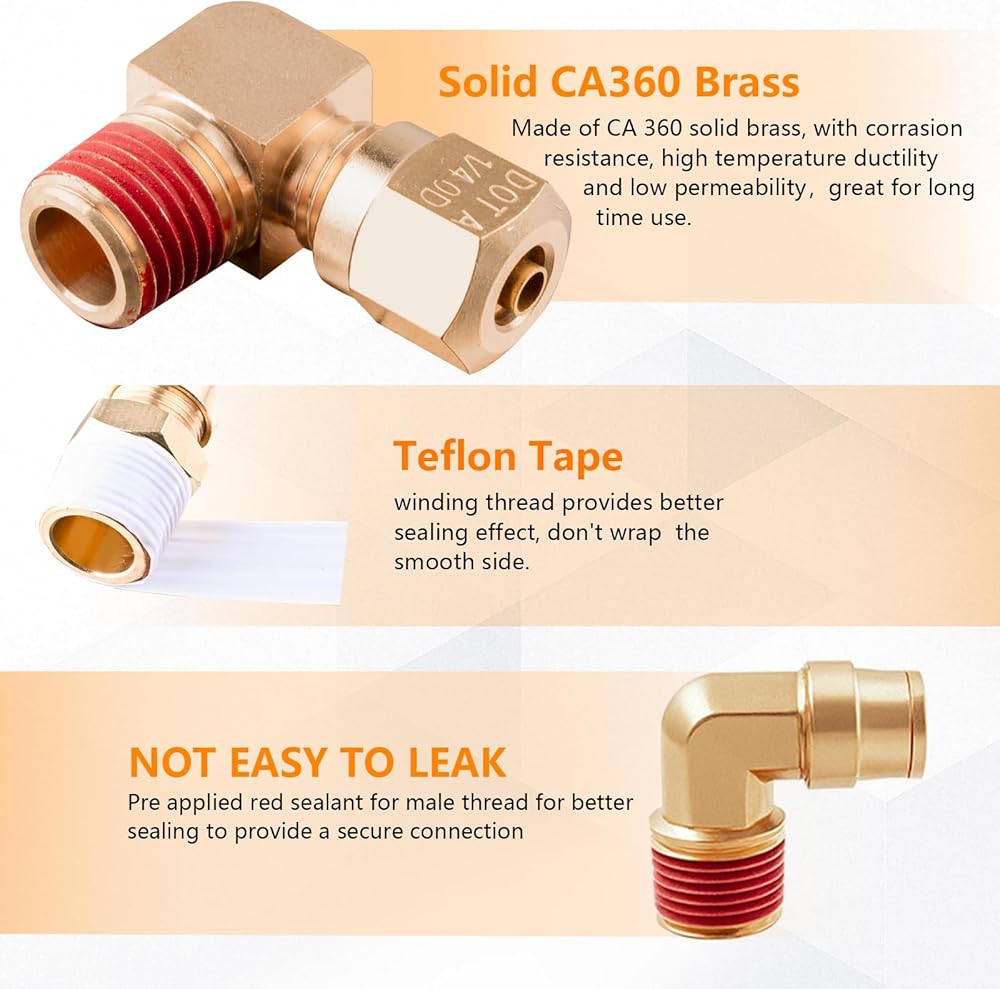 EASY TO INSTALL: Our Dot air fitting kit quick disconnect simply push tubing in, need to use tools to fix loose parts to handle in tight places, so that use will be more firm and not easy to fall off.And pieces that contain a threaded end already have sealant pre applied to provide a secure connection