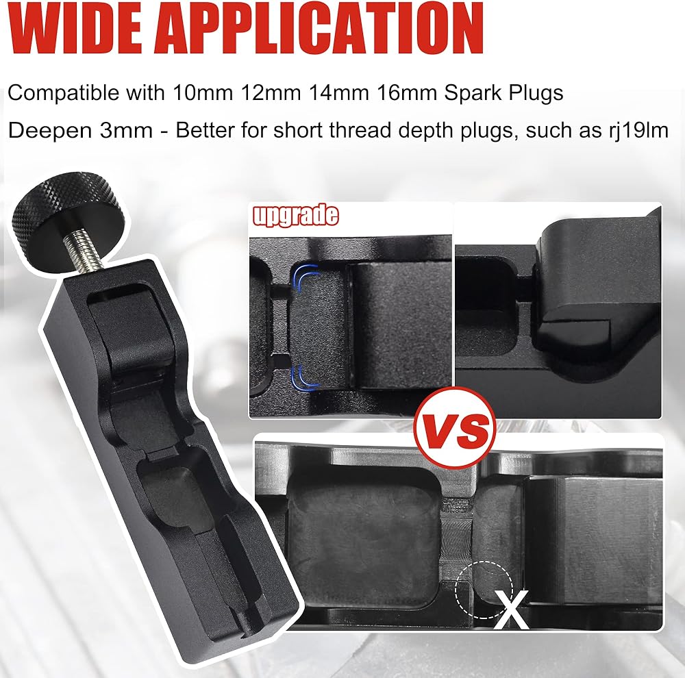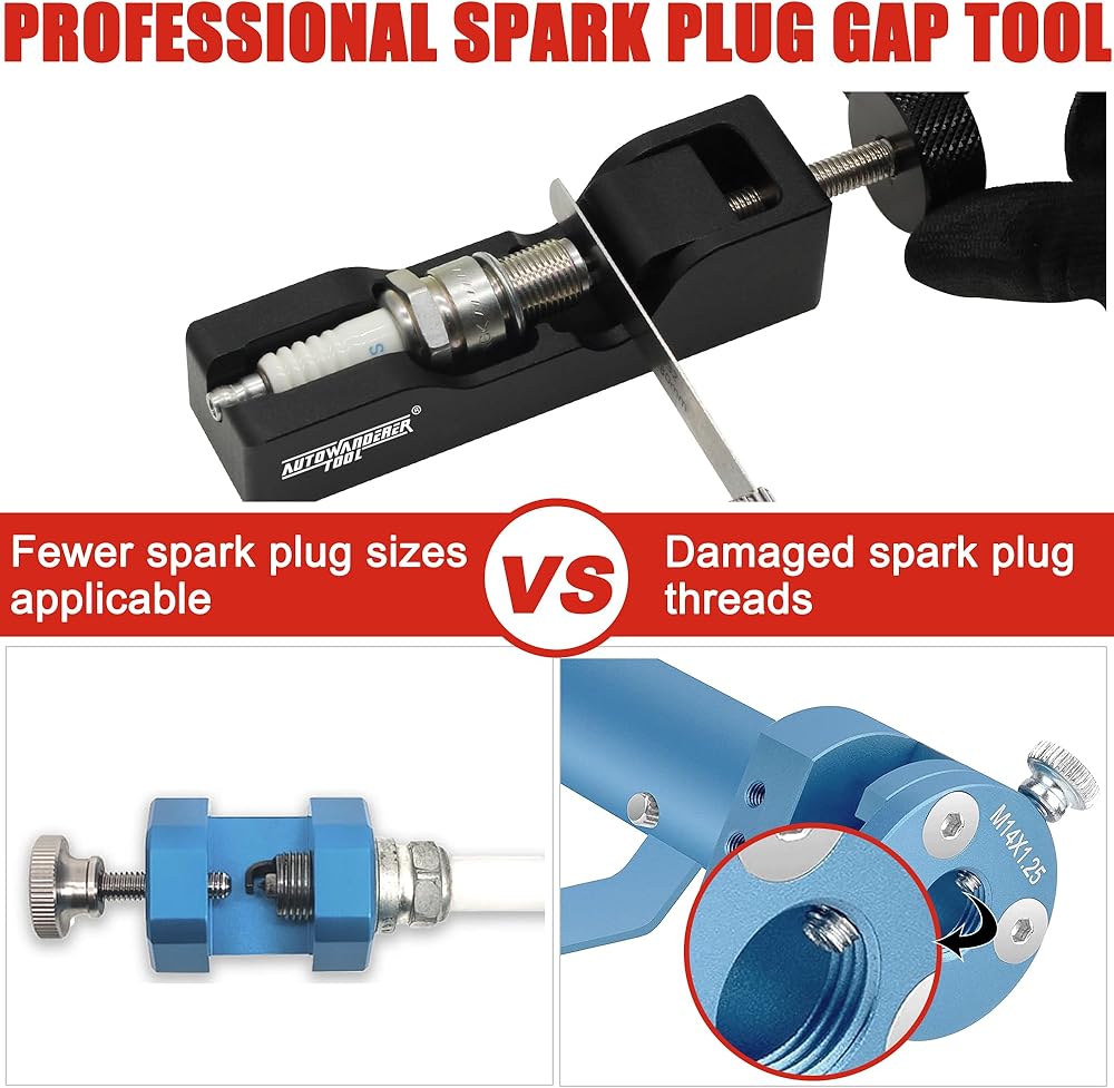 Spark Plug Tool Upgrade -- With the exquisite craftsmanship, the threaded rod is pushed in deeper. A wider range of applications, this new version of our gap plug tool cover 99% of all spark plug on the market. Note that the Feeler Gauge has some oil on it to prevent rusting.