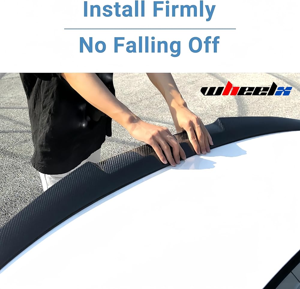 Easy Installation - The rear spoiler is easy to install without any special tools. No drilling or cutting required. Self-adhesive tape is attached on the back, and heating the double-sided tape with a hair dryer will further improve the bonding effect.