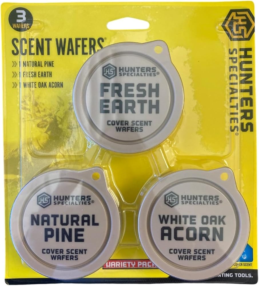 Mask your scent from wild animals. Hunter's Specialties Scent Wafers are a must have for the serious hunter. It is intended to mask human smells, by either pinning it to your clothing or hanging it at your hunting site. It's convenient to use, as it won't spill, freeze or wash away. Get Hunter's Specialties 3-pack of human scent mask wafers, and your prey won't even know you're there. FEATURES: - Pure concentrated scent that masks smells; - Scent can't spill, freeze or wash away; - Can be pinned to clothing or hung from hunting site; - Come in resealable container which revitalizes wafers after use; ABOUT HUNTERS SPECIALTIES Hunter's Specialties is a renowned brand dedicated to providing high-quality hunting accessories and gear for outdoor enthusiasts. From effective game calls to scent control solutions and comfortable camo apparel, Hunter's Specialties offers a diverse range of products to meet the needs of hunters worldwide.