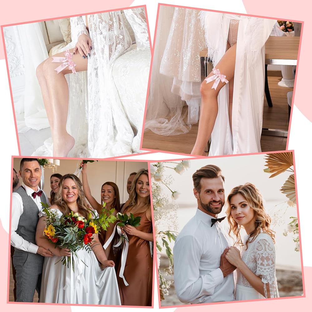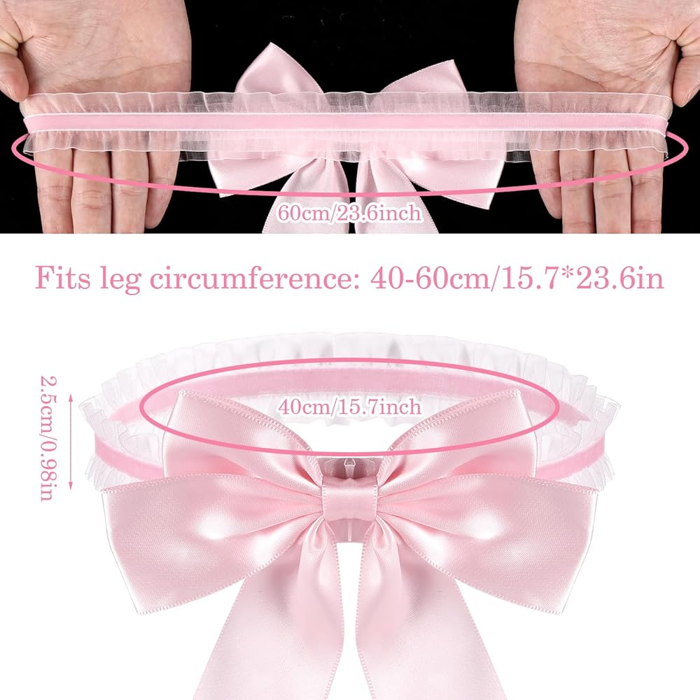 【Bow Wedding Garters】 Crafted from polyester material, this exquisite garter showcases a lustrous ribbon bow and features high quality elastic satin ribbon for the ring part. Enhanced by delicate translucent mesh pleat trim, the lace garter toss garter belt garter exudes a captivating charm, helping you exude confidence and charm in any gathering.