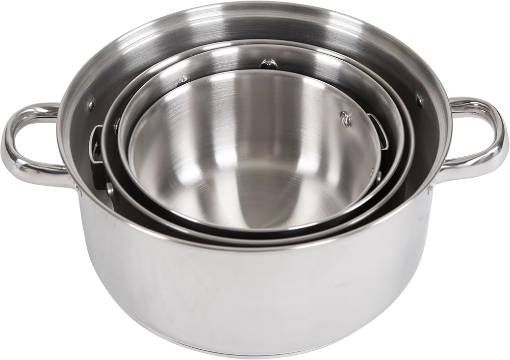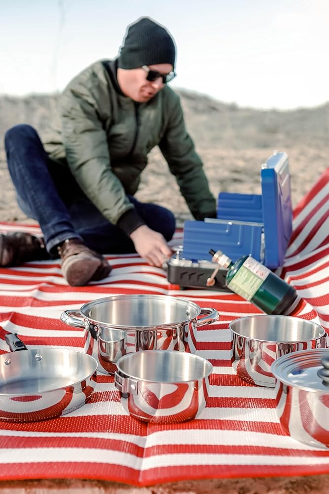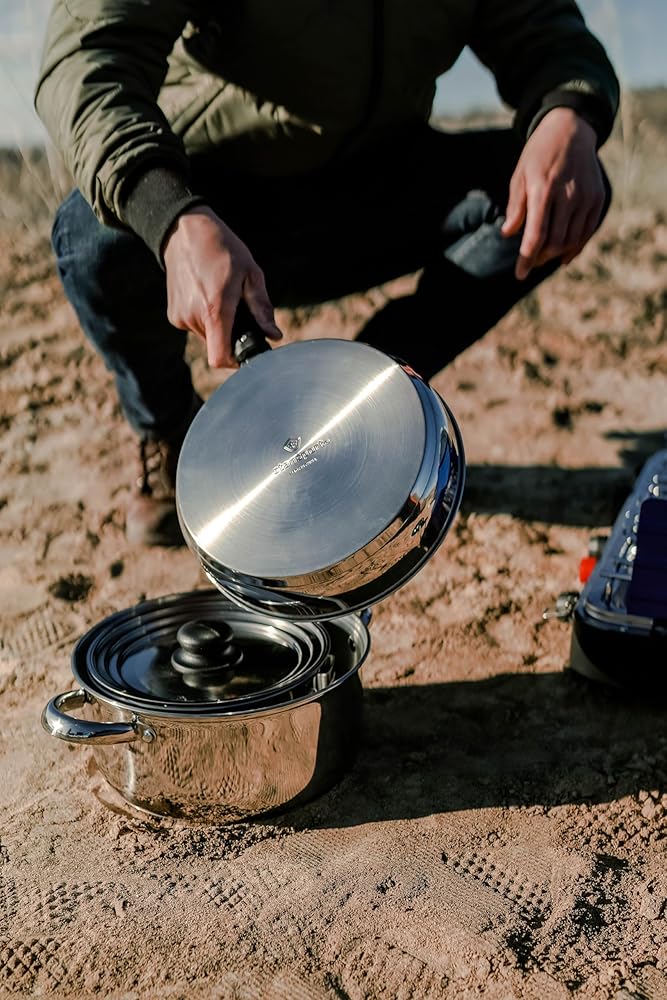 Stansport Stainless Steel Camping Cookware Set – Durable Nesting Mess Kit for Backpacking, Hiking & Outdoor Cooking – Compact Portable Pot & Pan with Carry Bag – Multiple Sizes for Family to Solo Use
