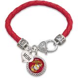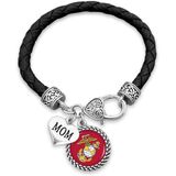 FTH U.S. Marines Mom Leather Bracelet with Round Logo, Charm and Lobster Clasp