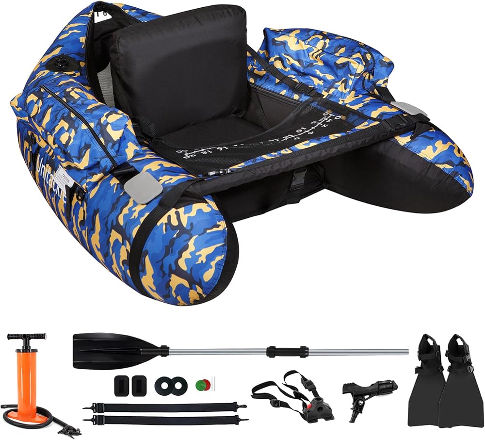 The fishing float tube is designed for all-day comfort on the water, with a breathable mesh seat and adjustable footrests. It has a spacious tankwell for storing your gear, as well as rod holders and a paddle park. The fishing float tube is made from durable polyethylene and comes with a limited lifetime warranty.