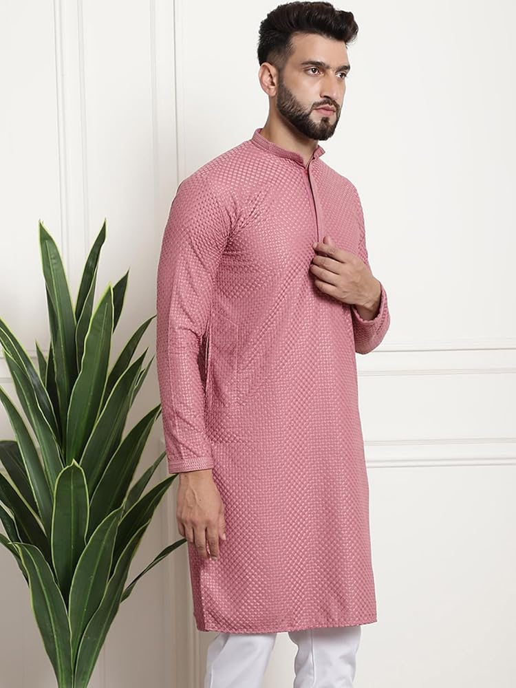 SOJANYA as a brand brings you quality and affordability. In market since 1958, we take pride in our commitment to maintain quality standards in each piece manufactured by us. Rock the fashion world as you adorn this Pure Cotton Checked embroidered kurta from the house of SOJANYA. This is made from Pure Cotton (100% Cotton). Adorn a glamorous look that is just perfect for any party.
