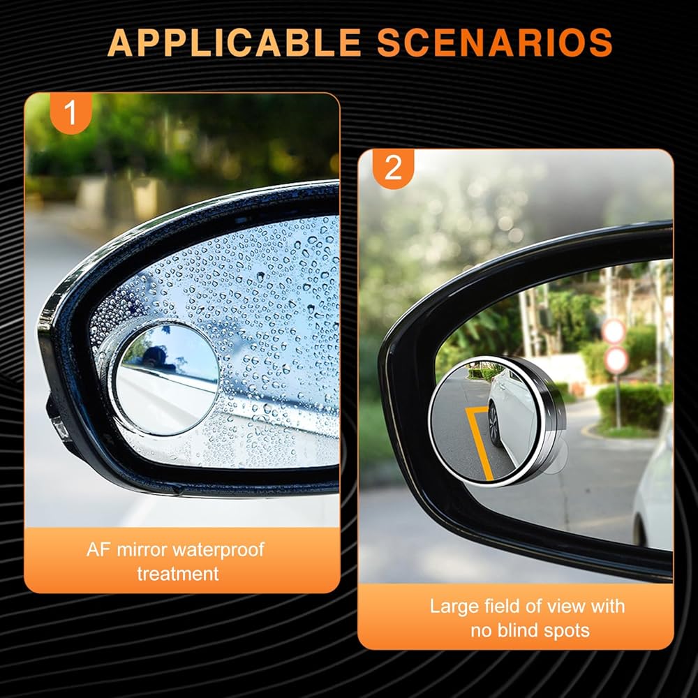 【Waterproof and Fogproof】This car convex blind spot mirror has AF mirror finish to prevent water droplets from remaining on the mirror. Even in rainy days, the mirror is always clear and will not blur the driver's vision, creating a safe driving environment for you.