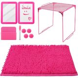 Cosweet Locker Organizer Kit - Back to School Locker Accessories Supplies for Girls Boys, 10 Pcs, Includes Shelf Rug Magnetic Whiteboard Mirror Dry Erase Marker and More Decor Essentials, Pink