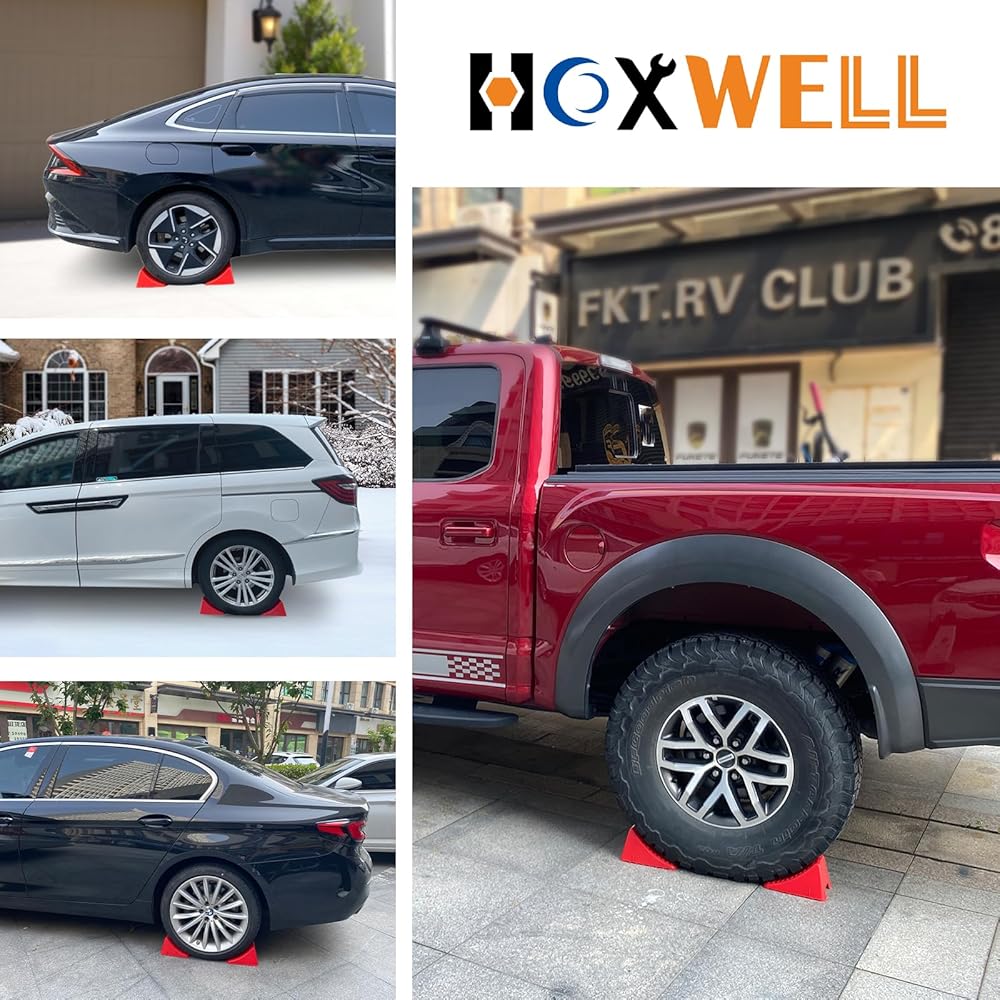 【SAFETY GUARANTEE】: The trailer wheel chock has a bright red color that can be seen easily to avoid being misplaced and provide caution and prevent accidents. Use this block and chocks wheel stabilizer for travel trailers kit to safely park anywhere you want!