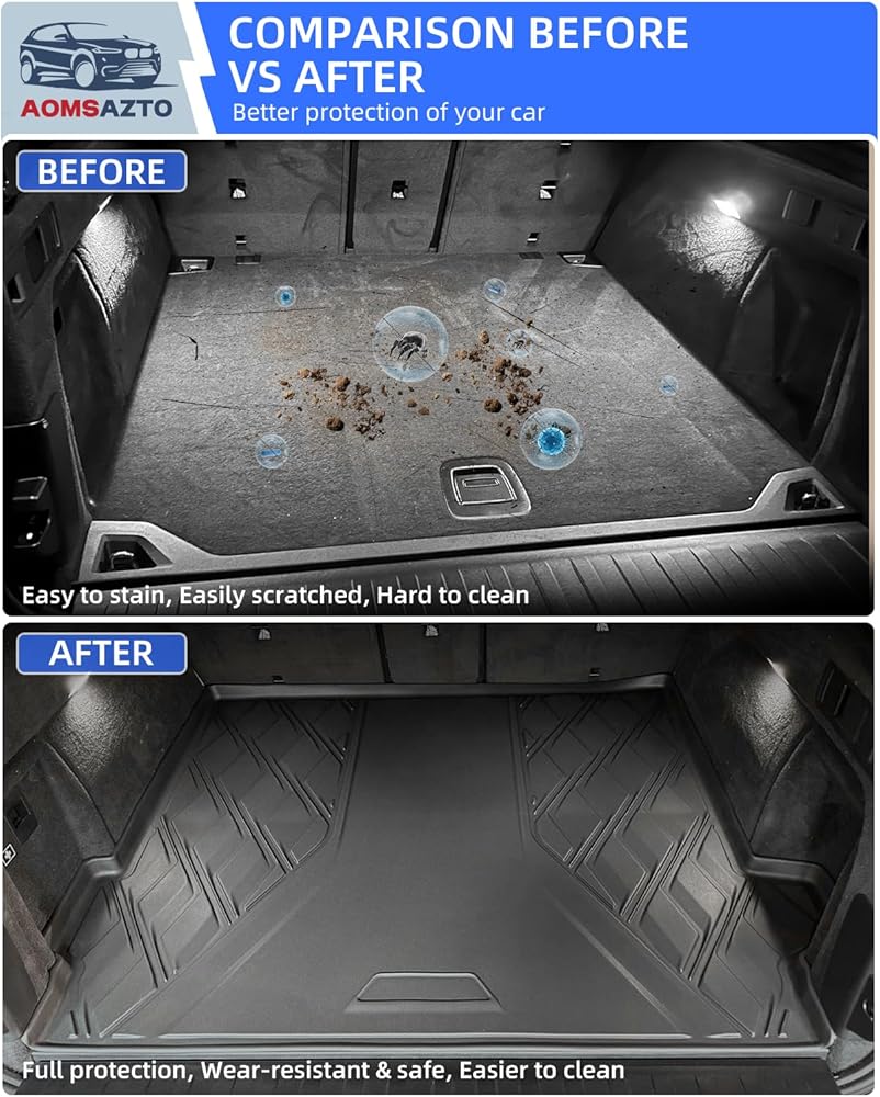 Cargo mat for Porsche Macan 2015 2016 2017 2018 2019 2020 2021 2022 2023 2024 Trunk tray liner, All Weather Cargo liner covers behind the 2nd row seats. Vehicle carpet protection with a low density precisely molded material that provides floorboard coverage, according to the car trunk size design, 100% fit your car and does not need to trim,Protect your cargo area.