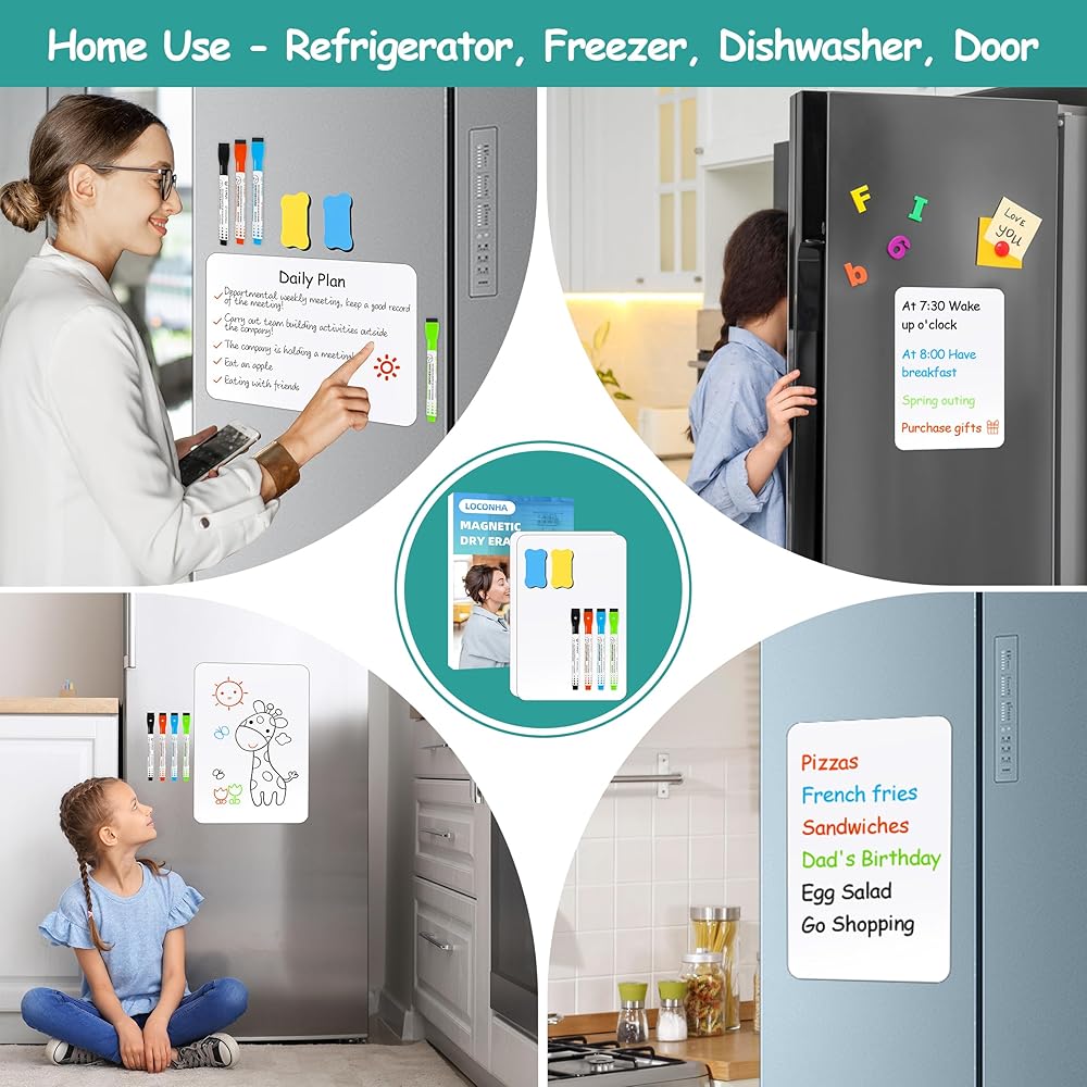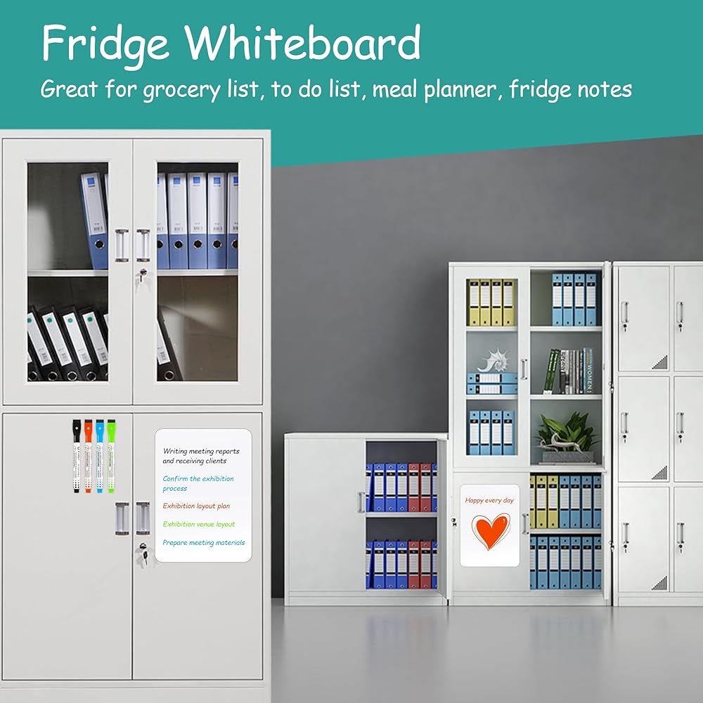 VERSATILE&PRACTICAL: Measuring inches by12*8 inches, the dry-erase board is perfect for scheduling, notes, shopping lists, and menu planners, to-do lists and study partners. Use it as a fridge whiteboard for convenience or use it as a meeting planner in conference rooms or interactive learning tools in homeschooling space. Additionally, this small whiteboard is a good size for a fridge, locker, or dorm room door.