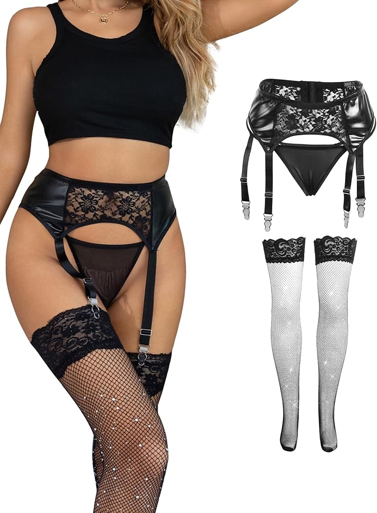 - Adjustable 4 straps wide garter belts for stockings (come with a matching series g string thong for women)
