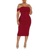 ELEGANT: Off The Shoulder And Ruched,The Ruched Midi Dress Can Give People A Layered Look,The Backlass Make You More Attractive While Not Too Exposed.
