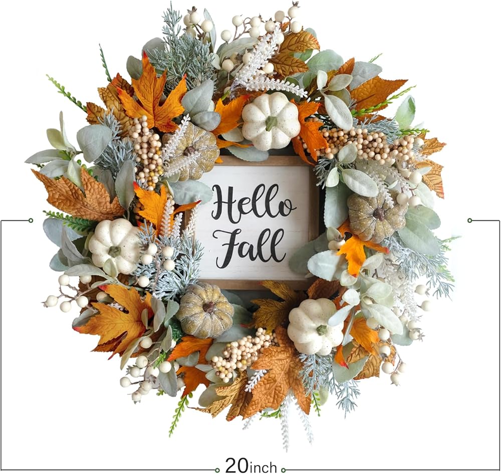 【20 Inch Fall Wreaths】The Outer diameter of this fall wreath is 20 Inch. Please adjust the branches to expand the wreath for a perfect shape when you receive it.