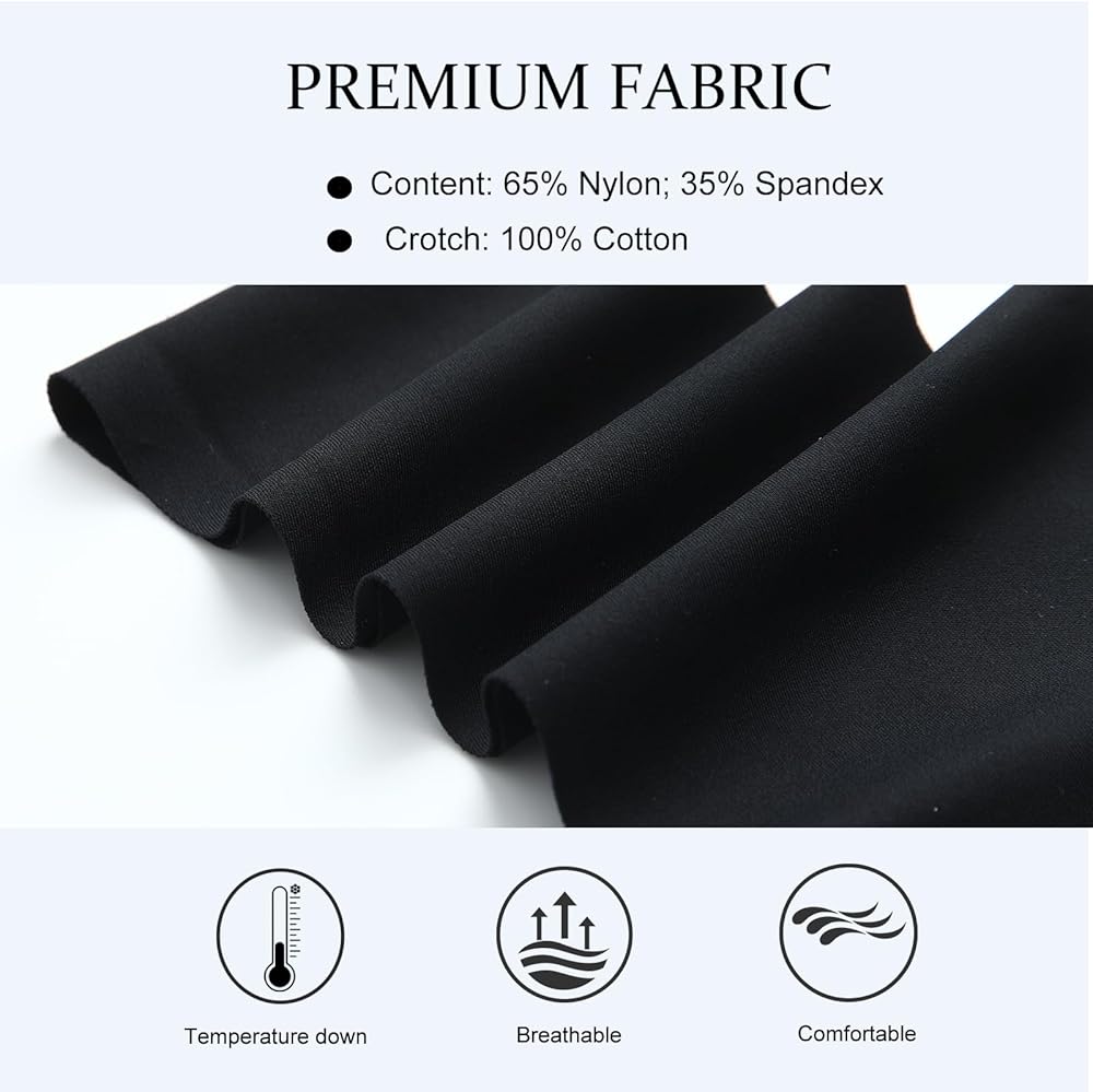 Soft and Breathable Fabric for All-Day Comfort: This fabric is made of 85% nylon and 15%of spandex. It is silky and smooth, won't irritate the skin and won't deformed by washing. 100% nature cotton layer to the crotch offers more protection and healthy.