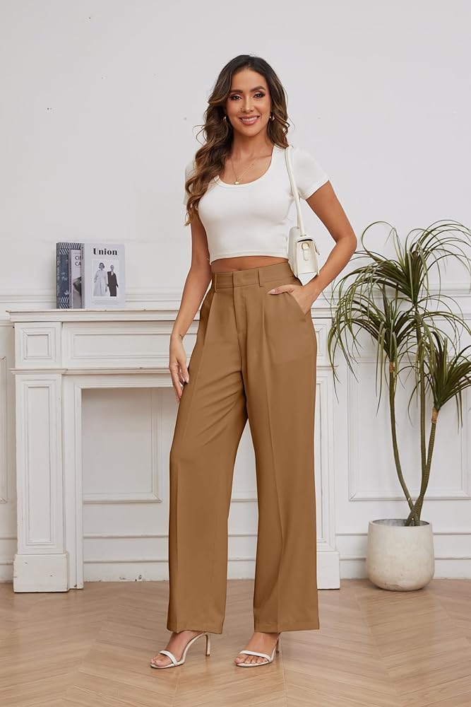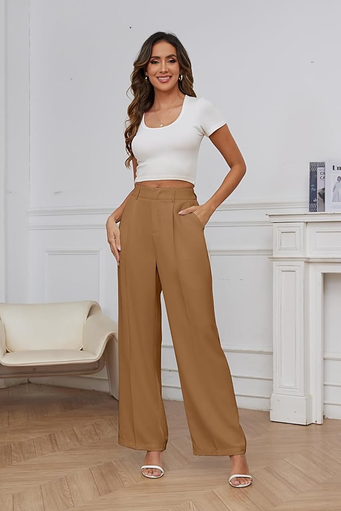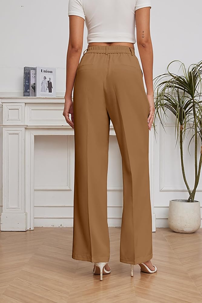 - FEATURE -- Back elastic waist, high-waisted wide leg style, pleated front, loose fit, breathable and soft fabric, zipper closure, two side pockets