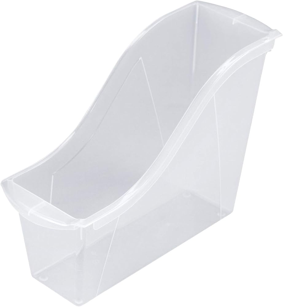 Keep your books organized and within easy reach. Link our book bins together to make a sturdy book storage or use the easy to grip handles to carry a set of books to your reading corner. The handles are perfectly sized for big and small hands. Fits narrow 12 inch bookcases. The bin will fit taller books and letter sized file folders too. Entire bin measures 11-3/4 L x 8-1/2 H x 4-1/2 W inches. Label pockets not included. Bright colors are ideal for STEM or STEAM organization.