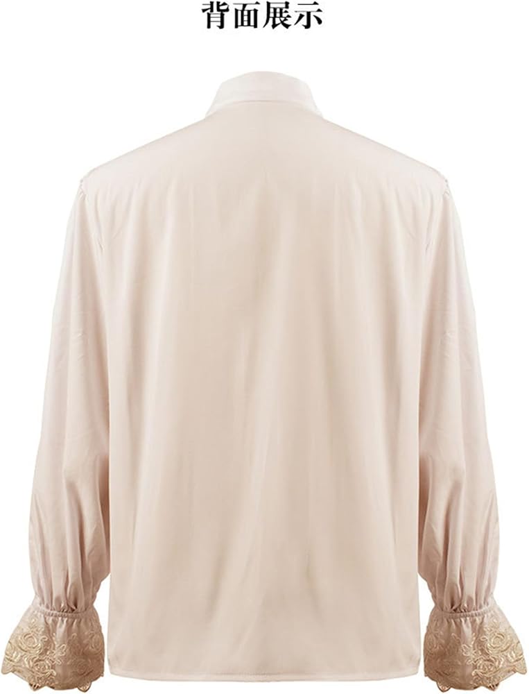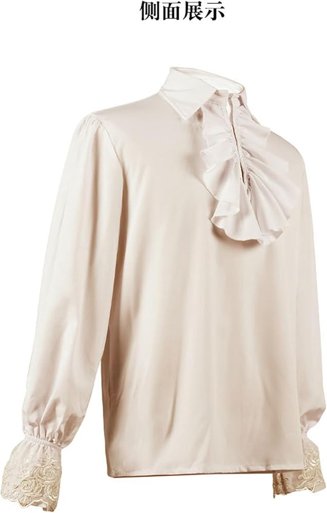 FEATURE: Medieval Renaissance clothing top is designed in a loose fit, ruffle front, lace flared cuffs,, long sleeves, lapel collar
