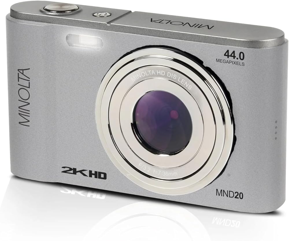 Minolta MND20 44MP Digital Camera – 2.7K Ultra HD Video, 16X Digital Zoom, Anti-Shake Stabilization, Time Lapse, Face Detection, 2.9-inch LCD Display – Lightweight Compact Camera (Silver)