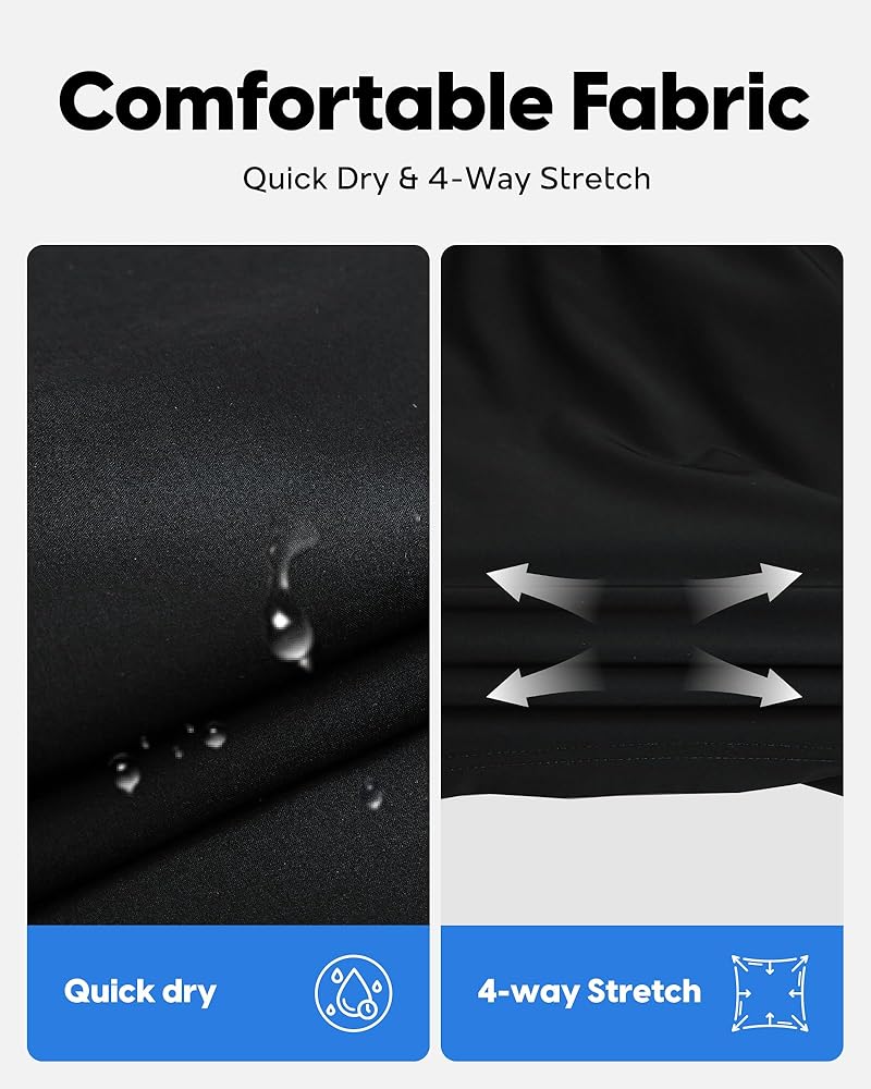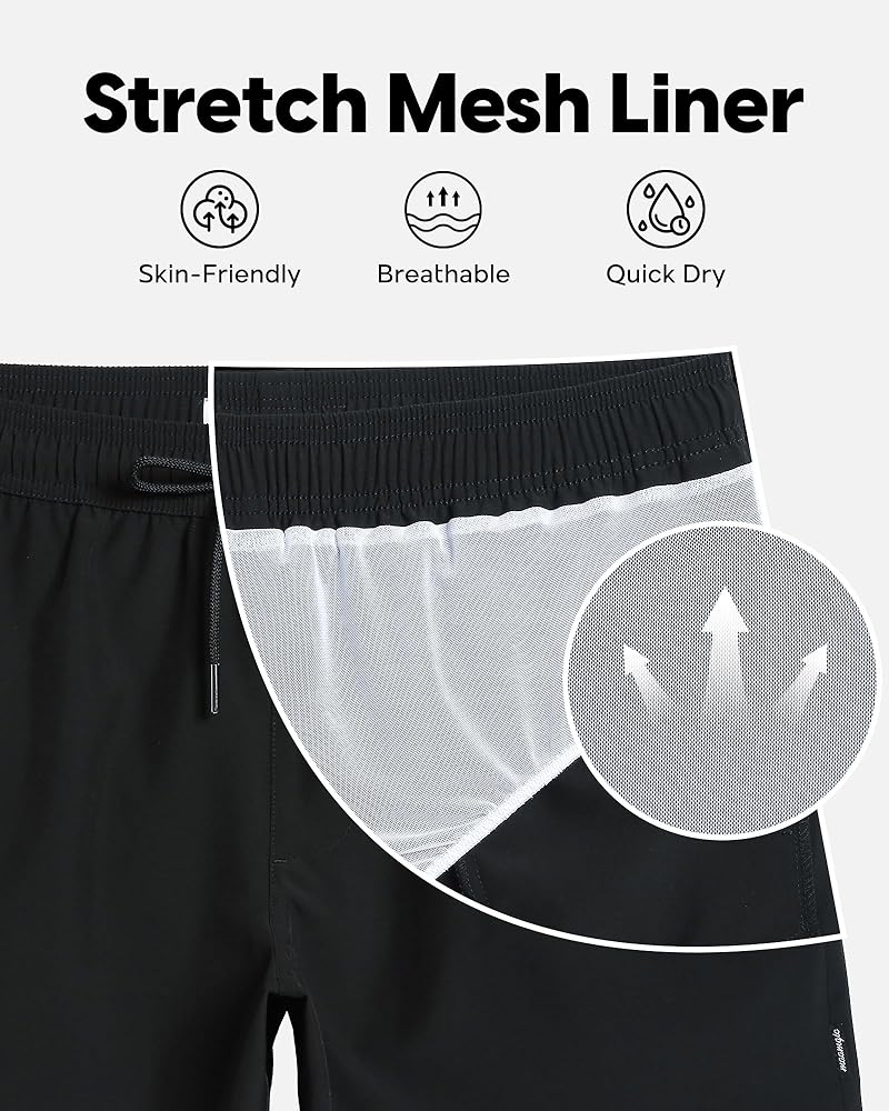 Stretch Quick Dry Fabric: Mens board shorts are made of 93%polyester and 7%spandex, breathable, lightweight and extremely water-repellent, 4-way stretch performance add extra movement and flexible enough. Quick dry fabric help you stay dry all times on the beach