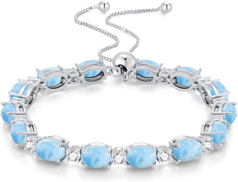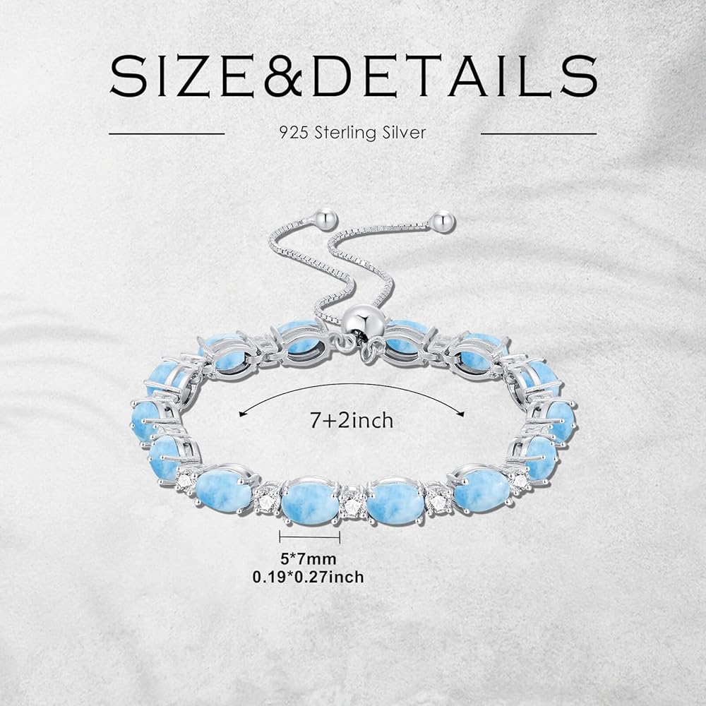 DESIGN - Turquoise represents good luck and happiness.With gorgeous Oval turquoise accentuated by 925 sterling silver, this tennis bracelet will add a teal brilliance to any outfits.Adjustable slider design fits for most of wrist size.
