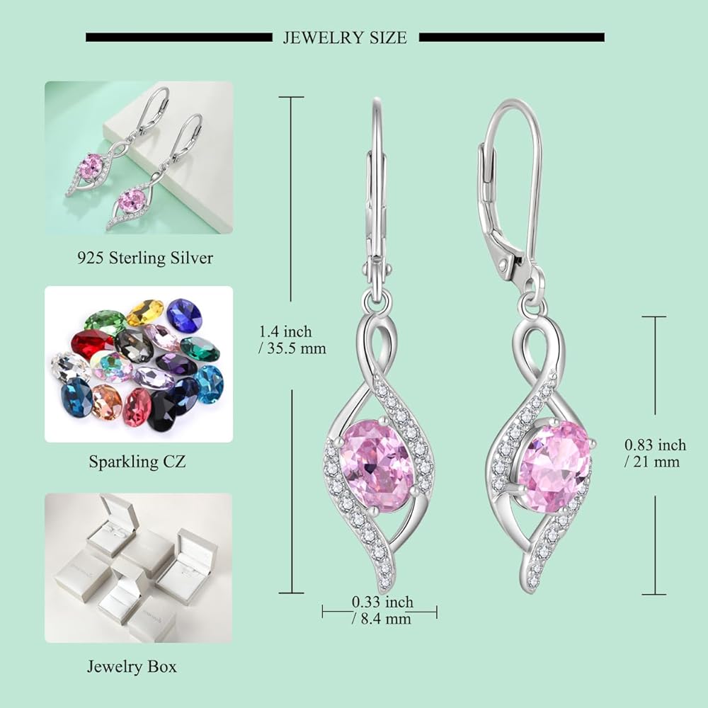 Material: The infinity leverback earrings are sterling silver inlaid with sparkle cubic zirconia. They are bright polished with rhodium plating, can be worn longer, and brighter