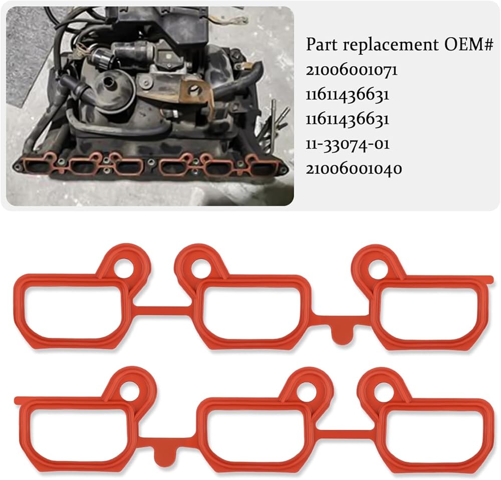 🚗 Buyer's Guide: Intake manifold gasket set measures 0.45x2.08x9.44 inch. Part replacement OEM#21006001071, 11611436631, 11611436631, 11-33074-01, 21006001040. To avoid the possibility of not being able to use the product after purchase, please double-check the product's OEM number and compatible model year before purchasing. Thank you!