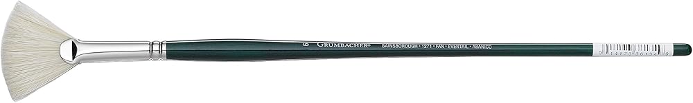 The Size 2 Gainsborough Oil & Acrylic Fan brush is made from Chungking hog's hair. This Professional-grade brush is generally the best choice for oil and acrylic paint due to the flags that hold color. The strong, durable brush easily manipulates heavy paint. It has a unique taper that causes the bristles to interlock, which maintains its original shape and helps control the placement of color. Fans are not an everyday brush, but are perfect for special painting that requires the gentle spreading and blending of colors, such as in portraiture and landscapes. Since 1905, Grumbacher has been a brand trusted by students, professors, art conservationists, and professional artists throughout the United States.