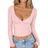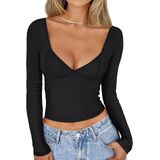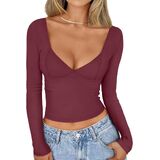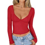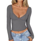Fashion Designs: The long sleeve shirts designed with deep v-neck, cropped and stretch fitted style, bustier corset, soft, slim fit, featuring sexy low cut v neck, casual y2k style fashion.