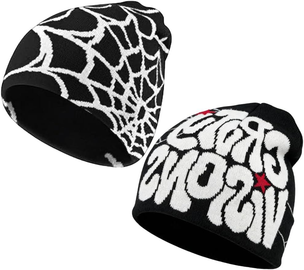 Y2K Beaine: A stylish black knitted beanie hat for men and women. If you're looking for a men's skull cap or a women's beanie, this Y2K skullcap is the perfect gift for anyone who loves gothic or alternative fashion.