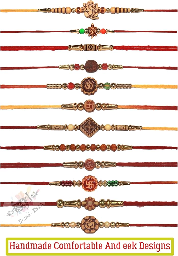 SET OF 12: The IS4A Rakhi set comes with 12 beautifully crafted Rakhis, perfect for celebrating the bond between siblings on Rakshabandhan.